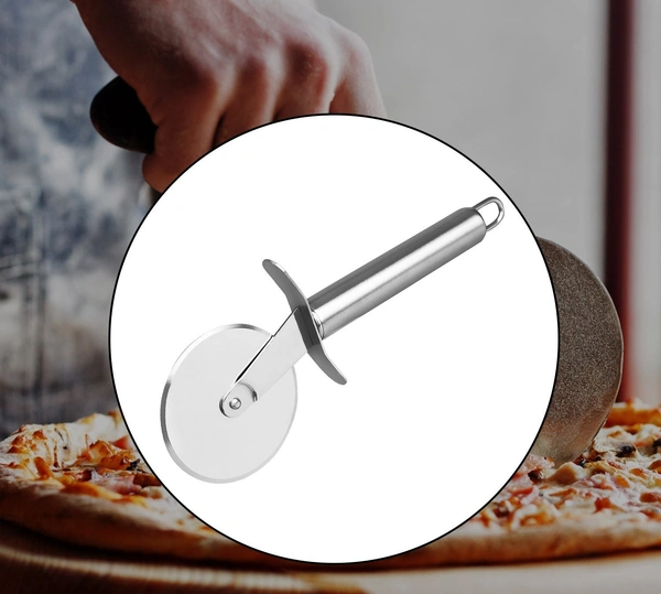 Stainless Steel Pizza Cutter is perfect for slicing your favorite pizzas, flatbreads, and dough. Durable materials resist tarnish, rust, scratching, and residue while maintaining blade sharpness. Safety guard and easy grip contoured handle allow for safe, easy rolling. Dishwasher safe